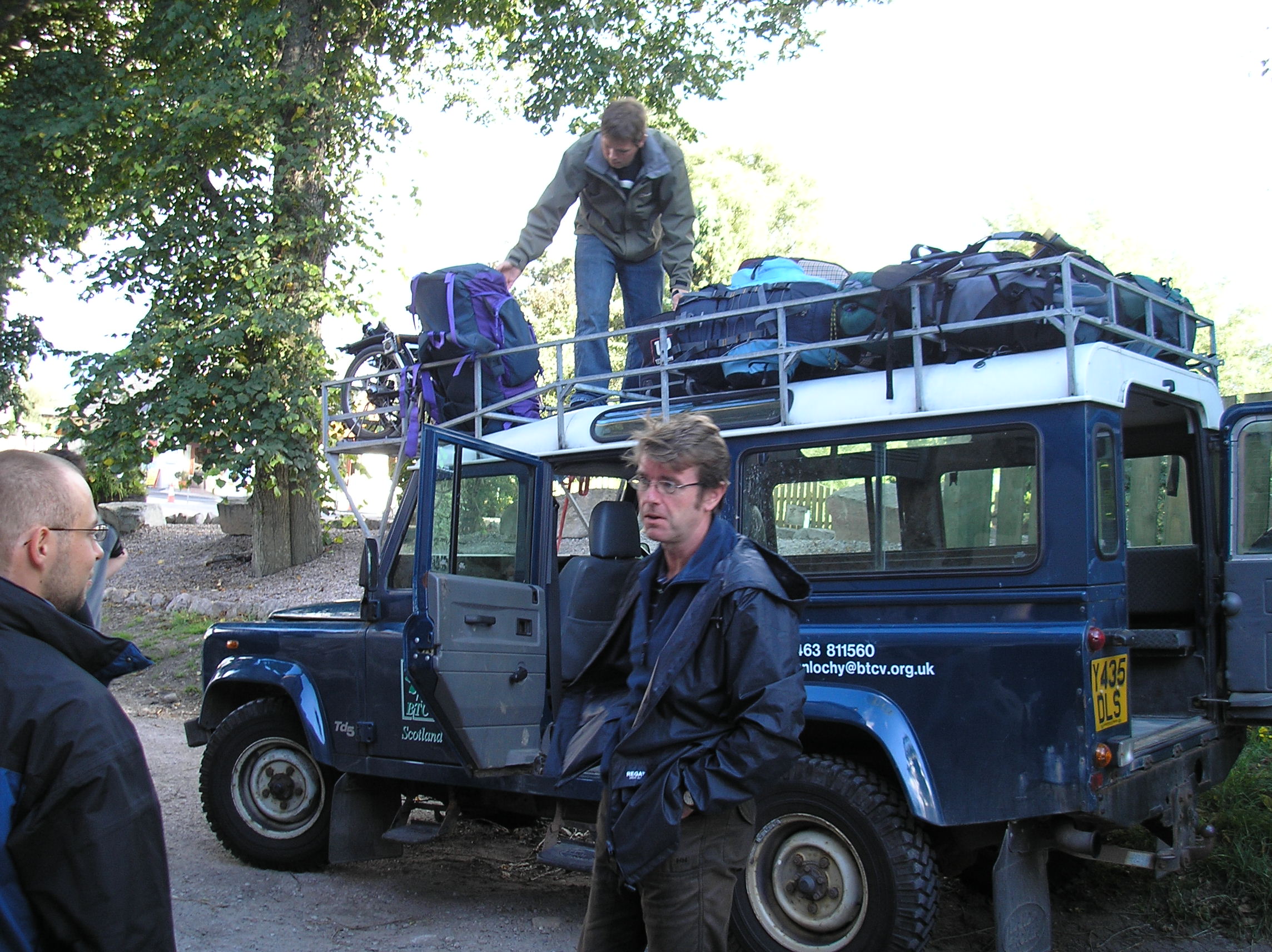 Loading the Landrover with 12 people and a lot of kit in Aviemore. (703KB)
